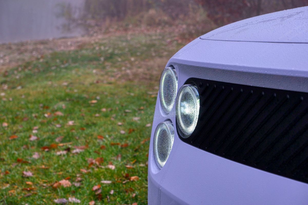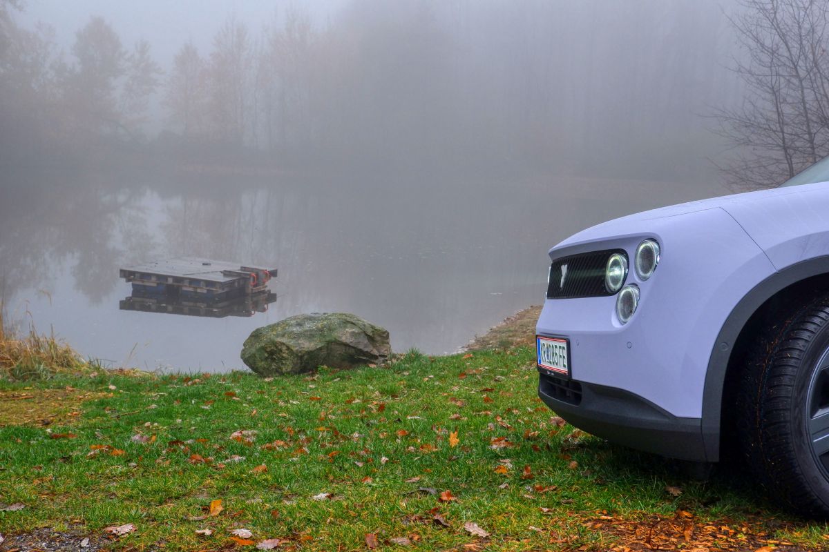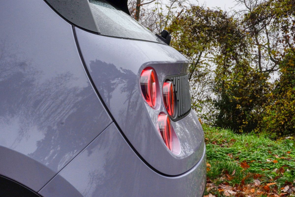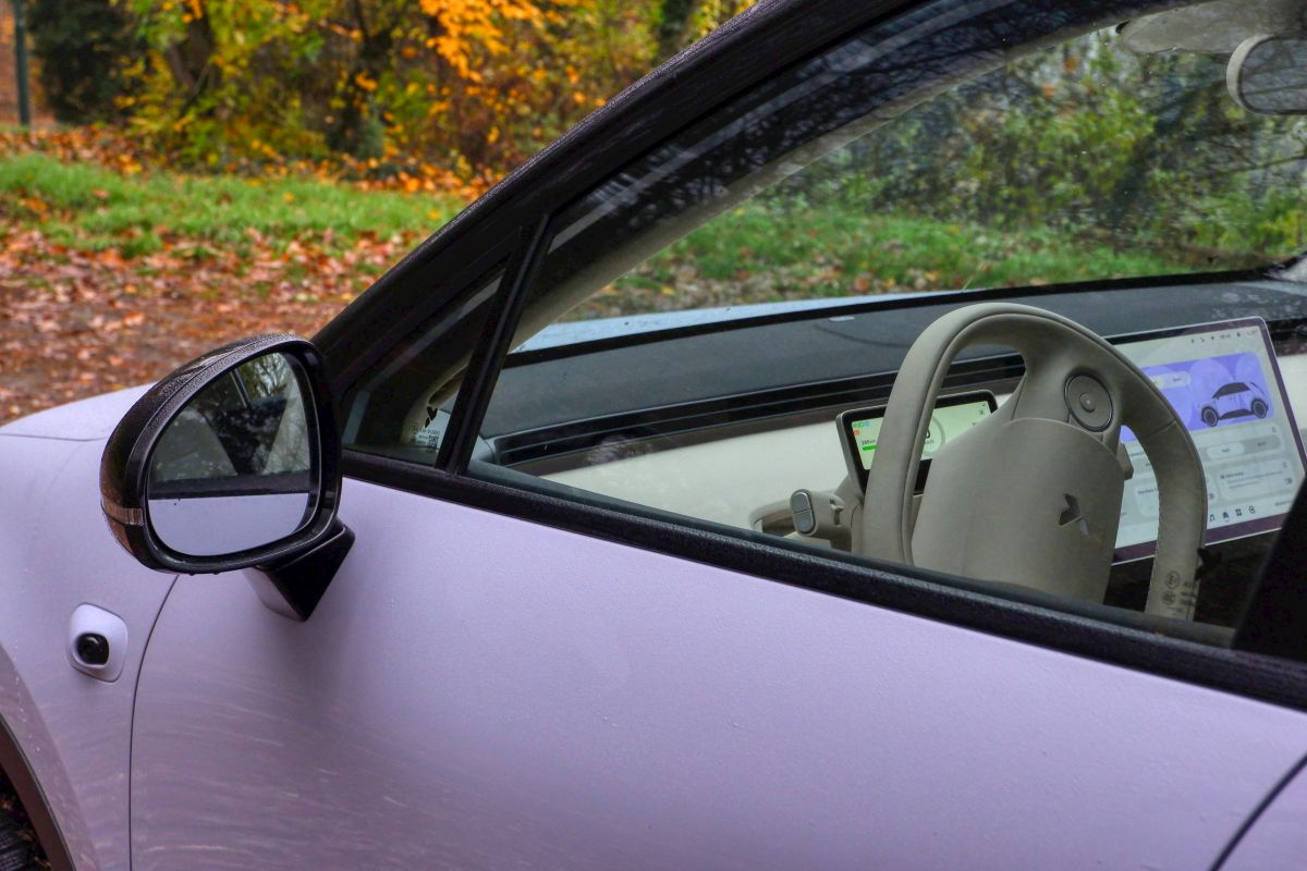 Das kleine Glühwürmchen leuchtet mich gleich einmal mit links und rechts je 3 in Dreiecken angeordneten Scheinwerfern durch den Nebel an. Durchaus charmant und originell. Was wohl zuerst da war? Der Modell- & Markenname oder die Scheinwerfer? Ungewöhnlich auch die Farbe, nämlich “lavender”, vereinfacht gesagt Pastellviolett. Wer es noch auffälliger möchte, wählt “lime” (was für mich eher Gelb als nach Limettengrün aussieht), wer es lieber unauffällig hat, kann Weiß (“marble”), Schwarz (“lava stone”), “sand” oder “graphite” nehmen.