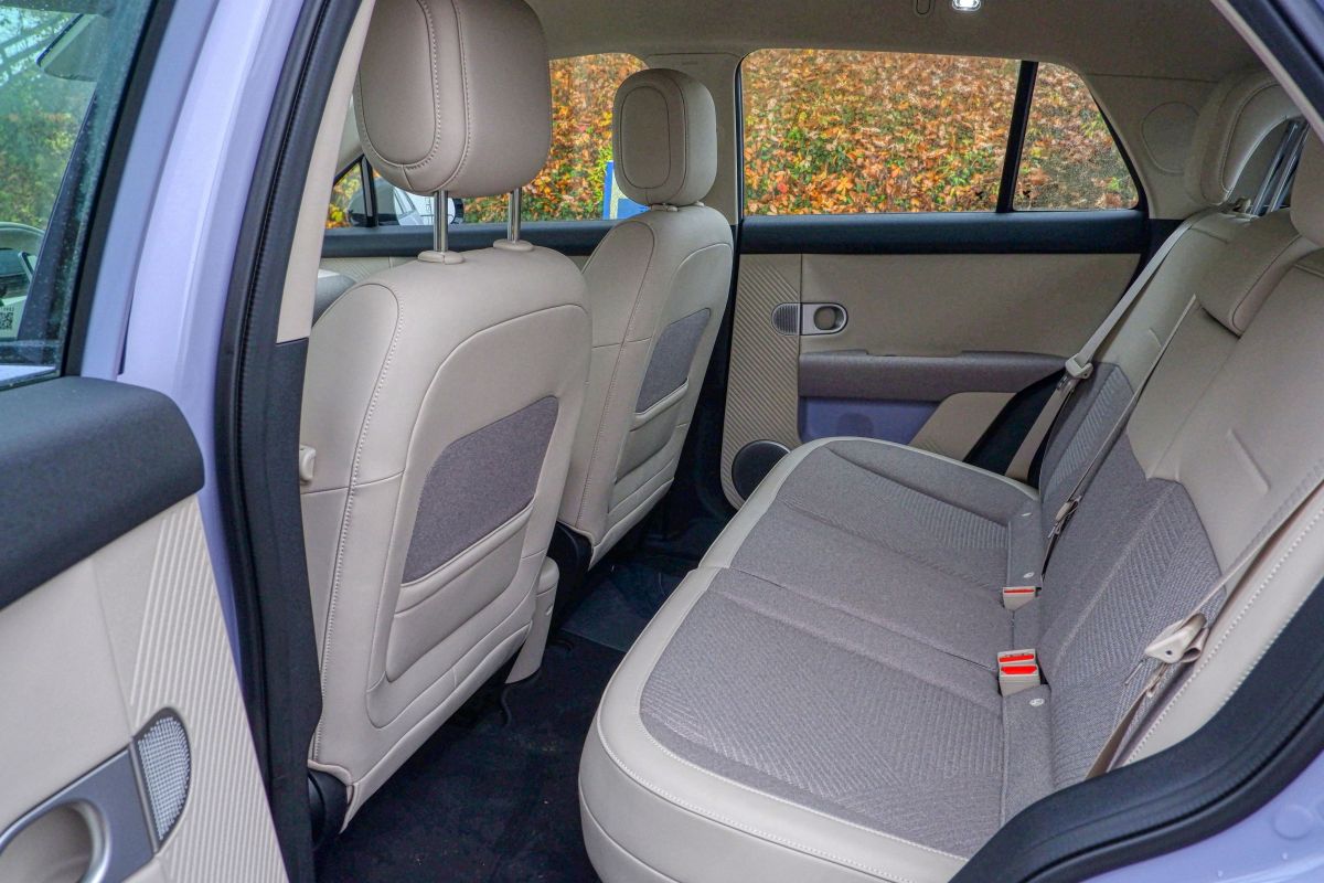 Noch größer das Erstaunen auf der Rückbank. Die hat tatsächlich Mittelklasseniveau! Mit dem Firefly kann man auch zwei Erwachsene auf die lange Reise mitnehmen. Dem Premiumanspruch der Marke zum Trotz spendiert uns NIO jedoch (ähnlich wie Renault bei R4 und R5) “nur” Teilledersitze. Die 18-Zoll-Räder sind übrigens Stahlfelgen, dazu gibt’s Radzierkappen, die man glatt für Leichtmetallfelgen halten könnte. Will hier NIO vielleicht bewusst zeigen, dass man auf typische Merkmale, mit denen Billighersteller “posen”, nämlich Vollledersitze und Alufelgen, lieber verzichtet und stattdessen auf “innere Werte” setzt?