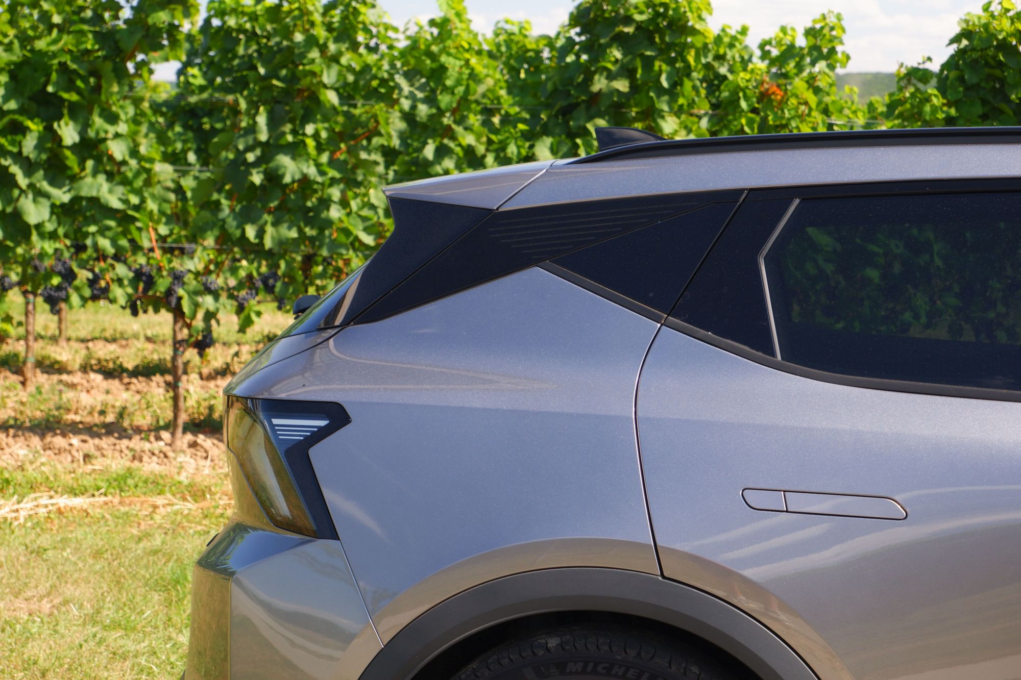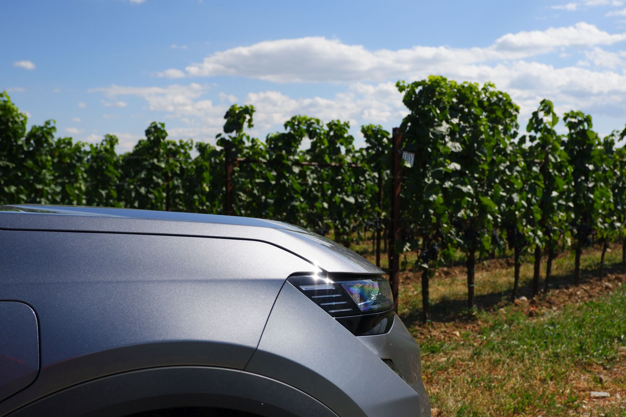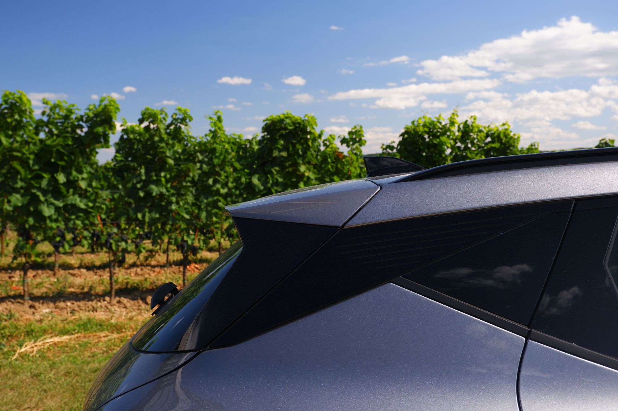 Nach der ersten Wanderung durch die Weingärten des Mittelburgenlands nehme ich mir Zeit, die Karosserie einmal genauer zu betrachten. Ursprünglich ein Kompaktvan auf Basis des Mégane, ist der Scénic der 5. Generation nun eher ein SUV. Ich schreibe jetzt bewusst “eher”, weil dem Scénic im Vergleich zu “richtigen” SUVs wie beispielsweise dem Opel Grandland etwas Bodenfreiheit fehlt, auf den Grandland fehlen ihm auch rund 20 Zentimeter, wovon man zwar beim Einparken viel, im Innen- noch im Kofferraum jedoch wenig merkt.