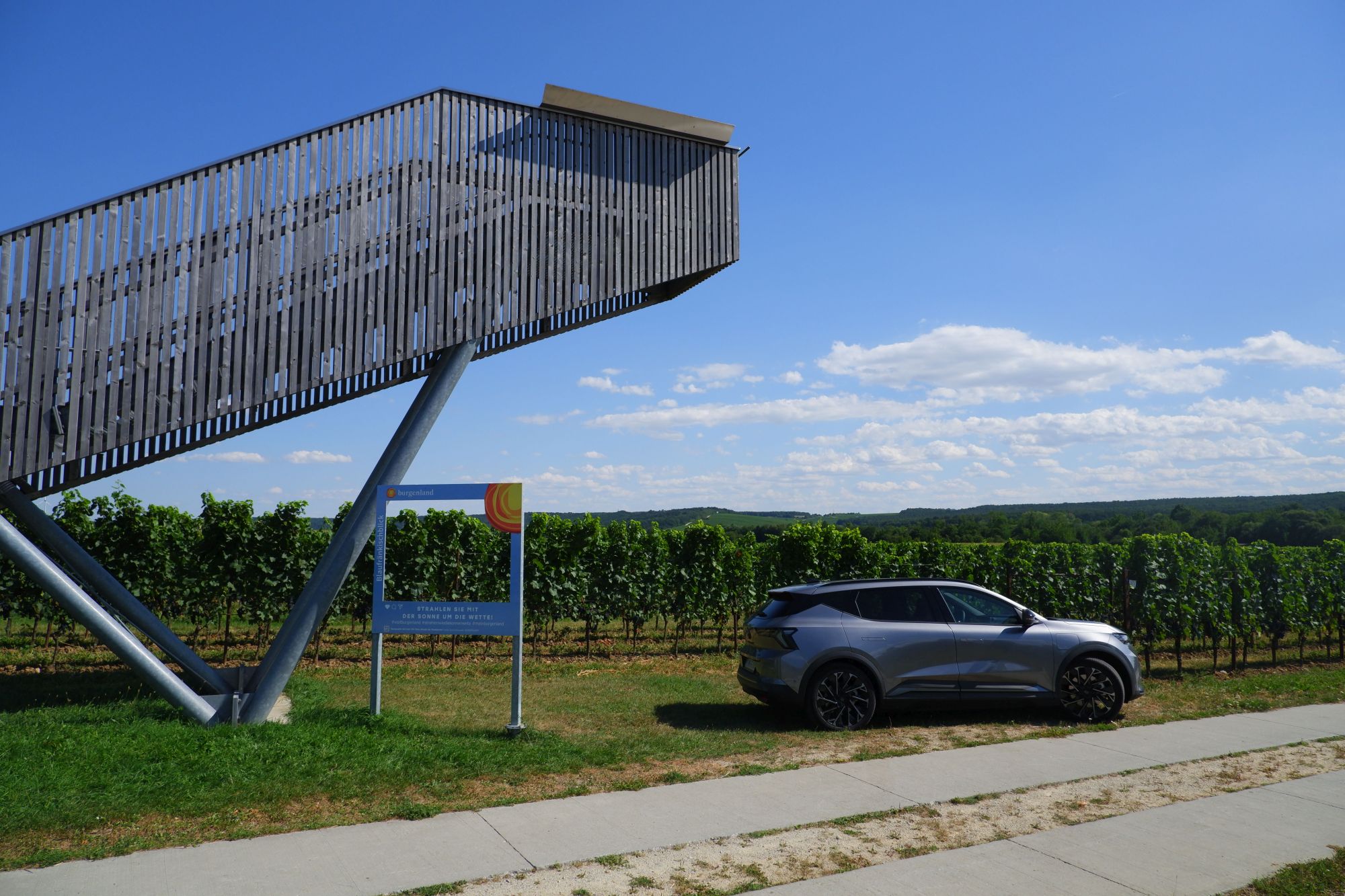 Bei der Fahrt über Weinberge und durch Kellergassen offenbart sich der wahre Charakter des Renault 4 E-Tech.
