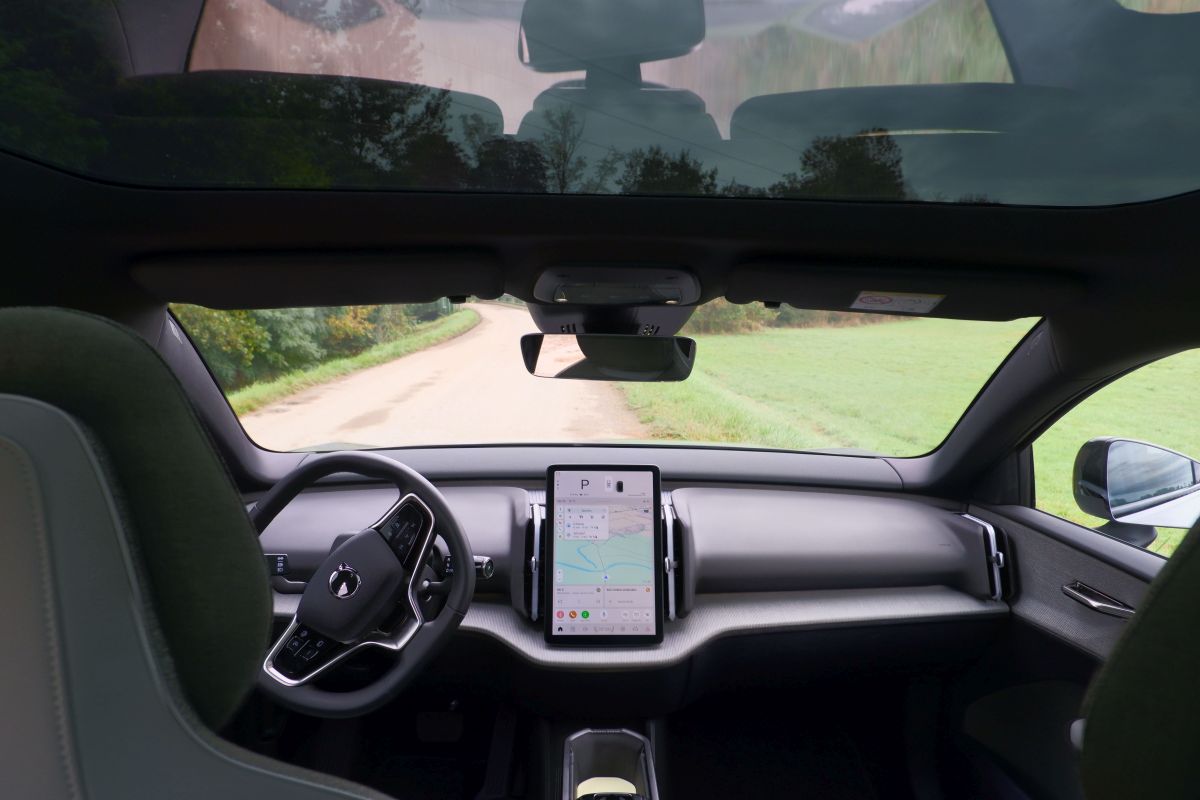 Der Großteil der Bedienung erfolgt übrigens über das große Display in der Mitte des Armaturenbretts, das auch die einzige Anzeige des Fahrzeugs sind.