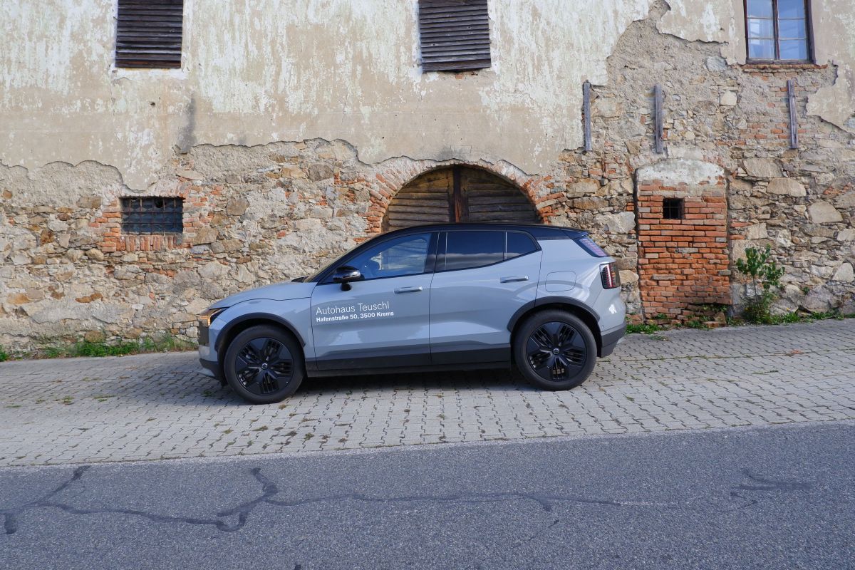So, genug von diesen (Film)klischees! Ich durfte mir vom Autohaus Teuschl den elektrischen Volvo EX30 ausleihen und zwar in der “Offroad-Version” namens “Cross Country”, somit mit Allradantrieb und insgesamt 428 PS. Vor der Übergabe gab es natürlich wie immer einen Kaffee von der Rösterei “Kaffee Campus Krems”, der bekanntlich zu den besten des Landes zählt. Hält einen wach, macht es aber schwer, sich von den Klischees zu befreien.