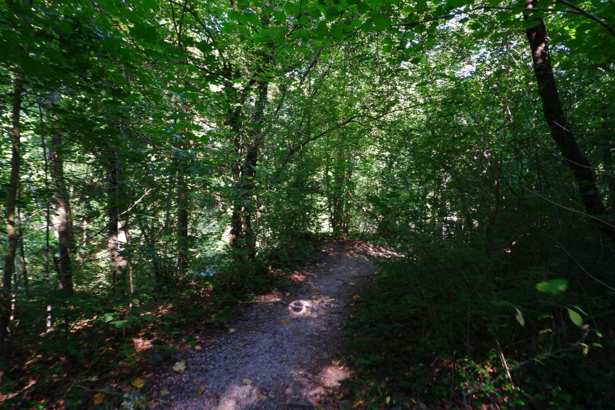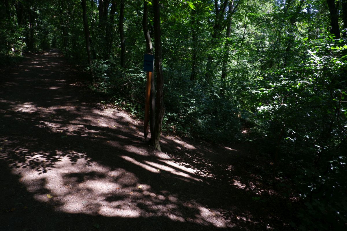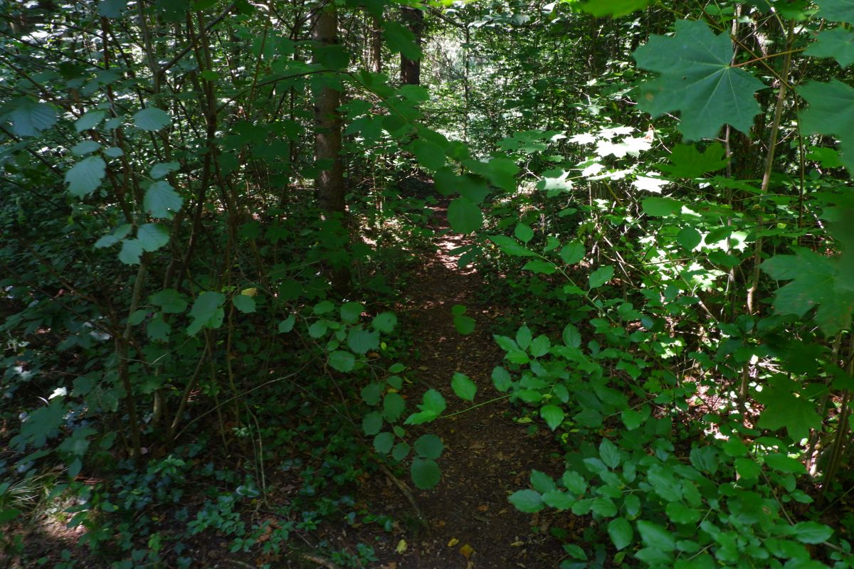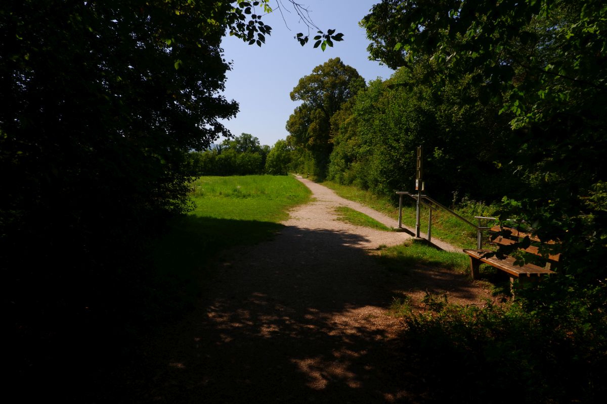 geht man zu einem quer verlaufenden Weg. Jetzt könnte man einfach links in diesen einbiegen und dann mehr oder weniger nur geradeaus zurückgehen. Ich rate aber, rechts abzubiegen…