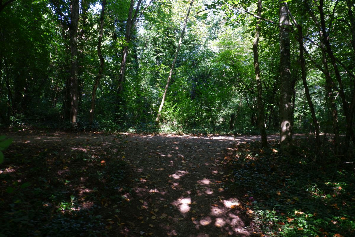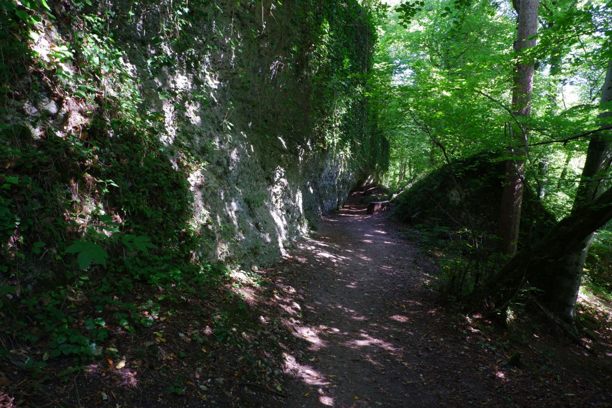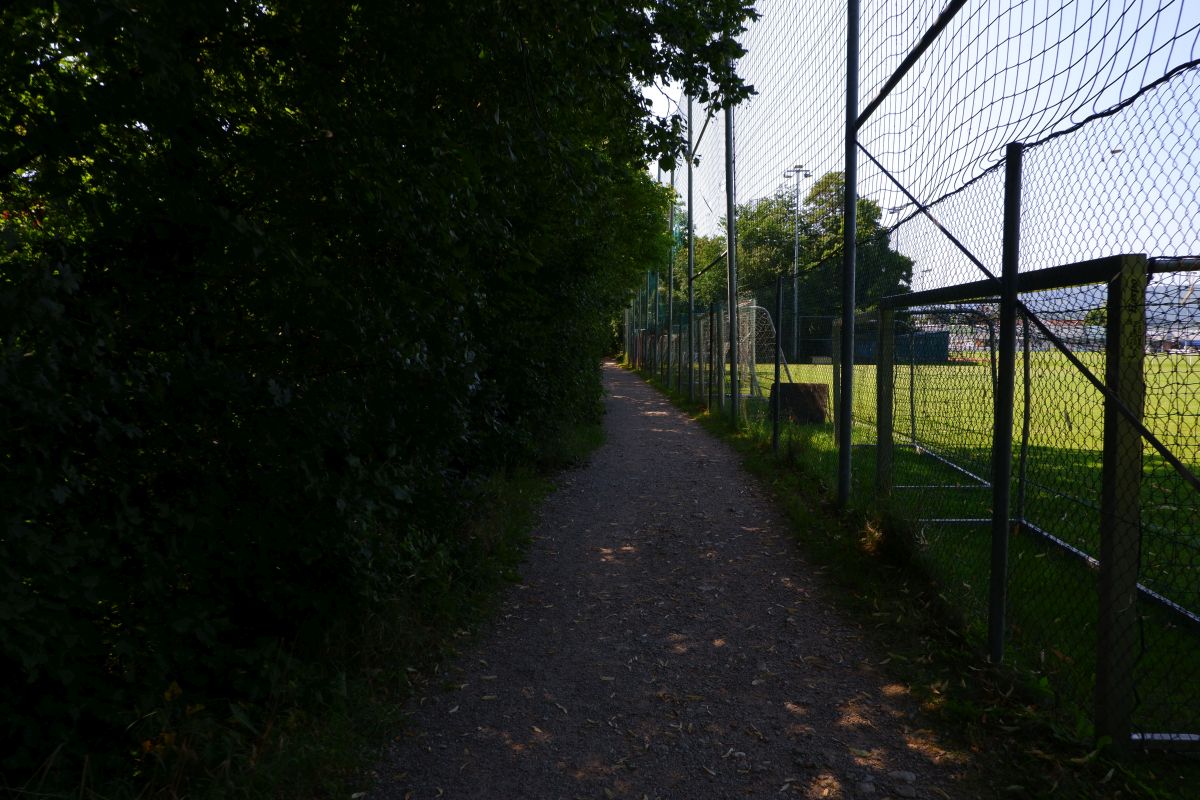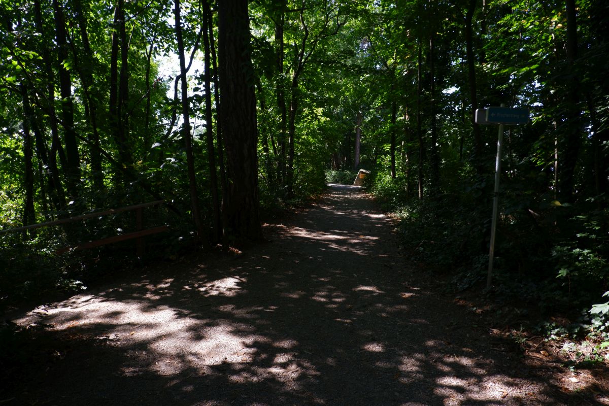geht man zu einem quer verlaufenden Weg. Jetzt könnte man einfach links in diesen einbiegen und dann mehr oder weniger nur geradeaus zurückgehen. Ich rate aber, rechts abzubiegen…
