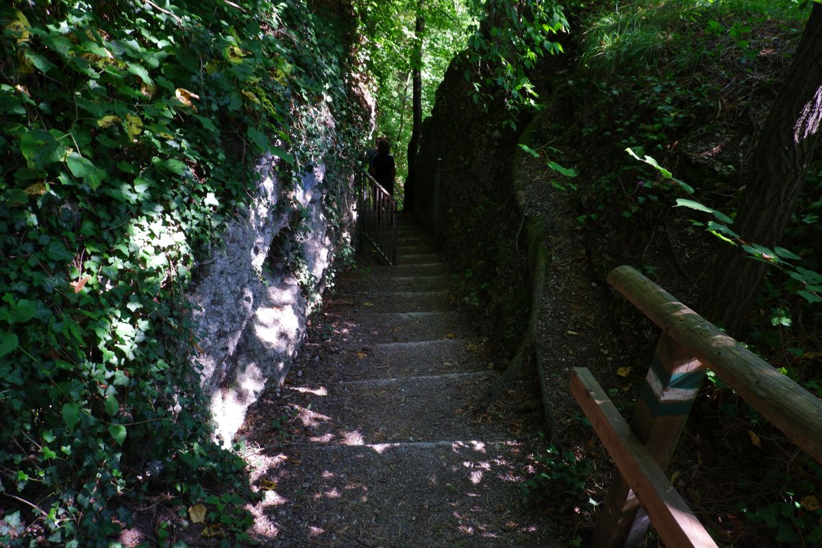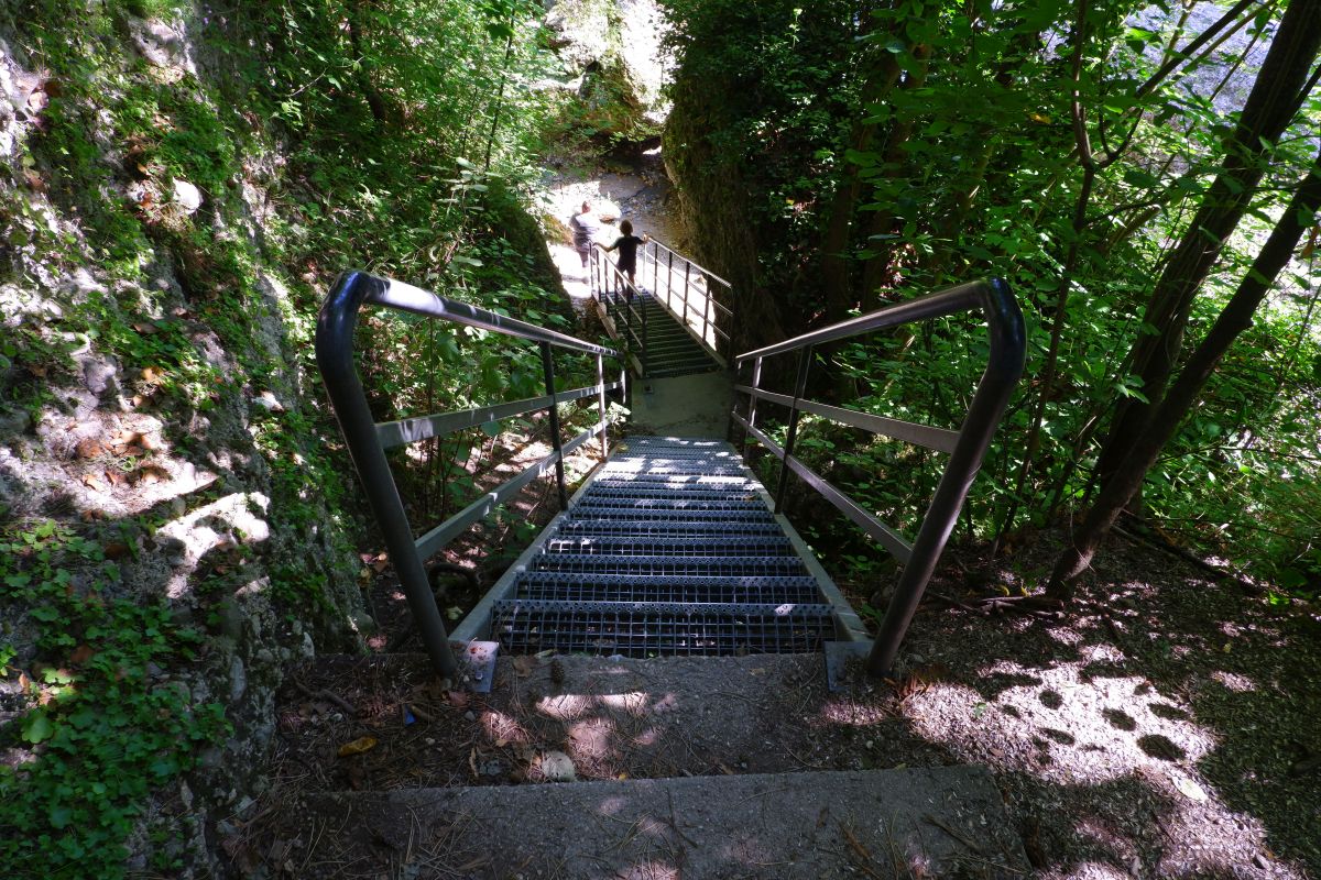 Auf der anderen Seite des Stegs geht man die Treppe hinauf…