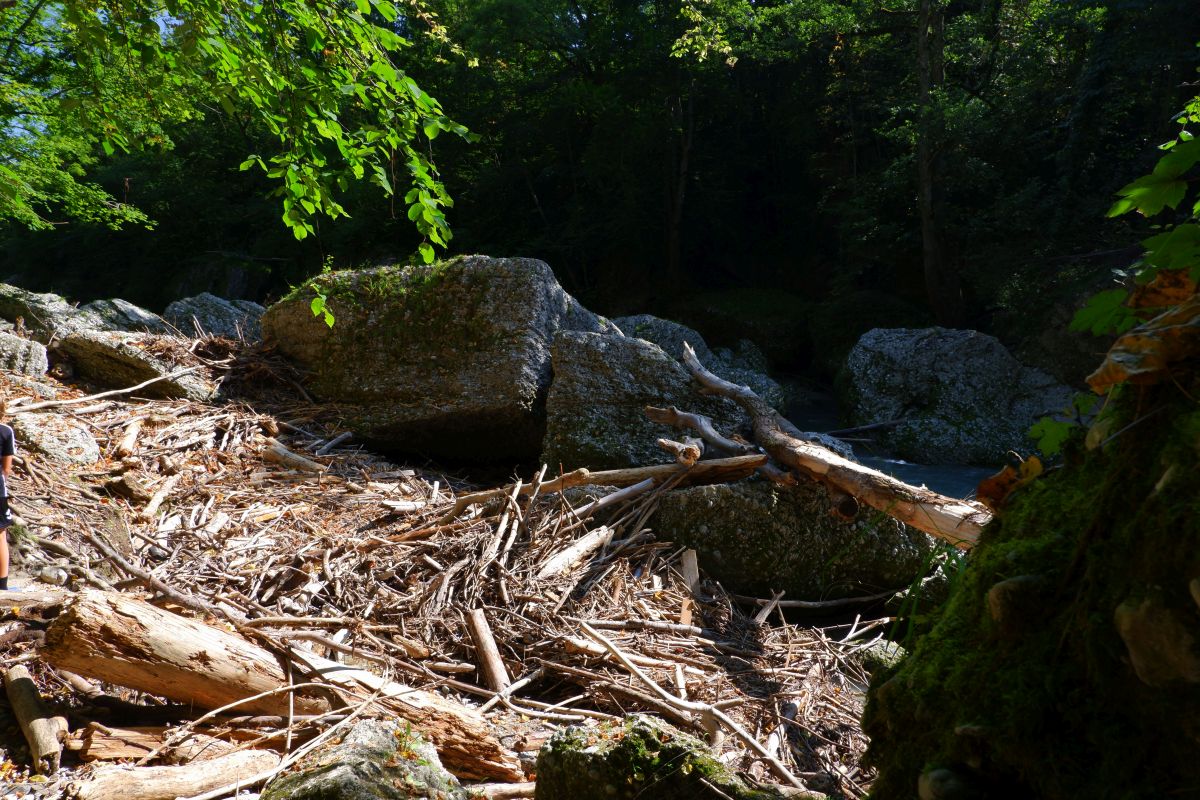 Angeschwemmtes Holz zeugt vom letzten Hochwasser.