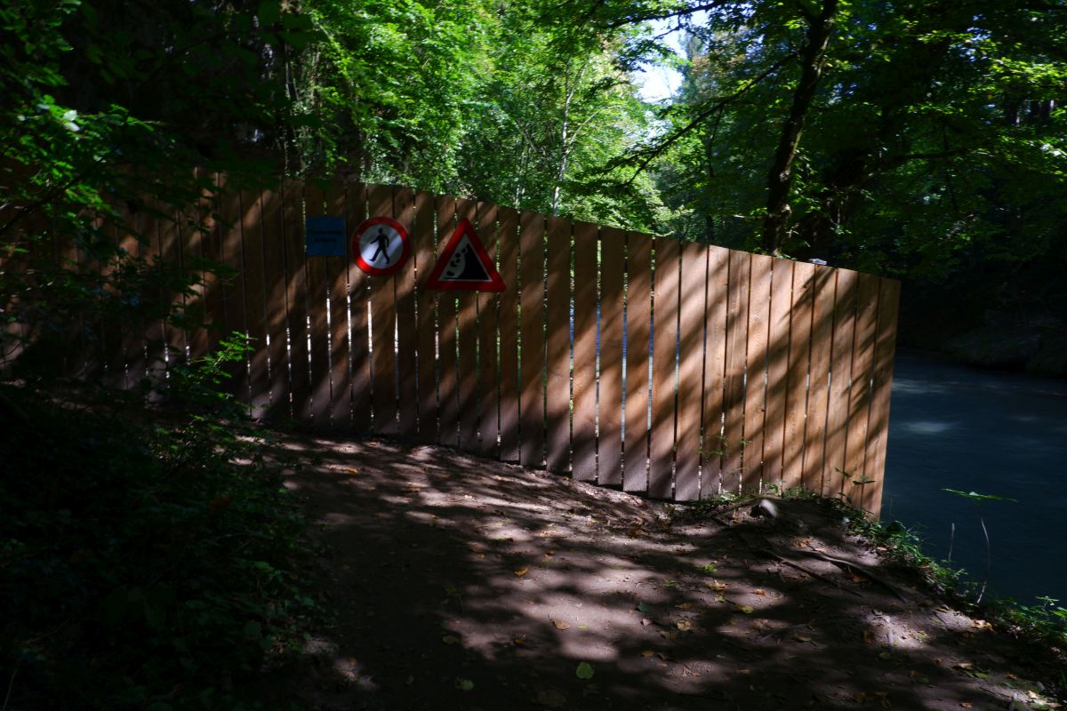 Plötzlich steht man dann vor einer Holzwand. Wegen starker Steinschläge musste leider ein Teil des Fischersteigs gesperrt werden.