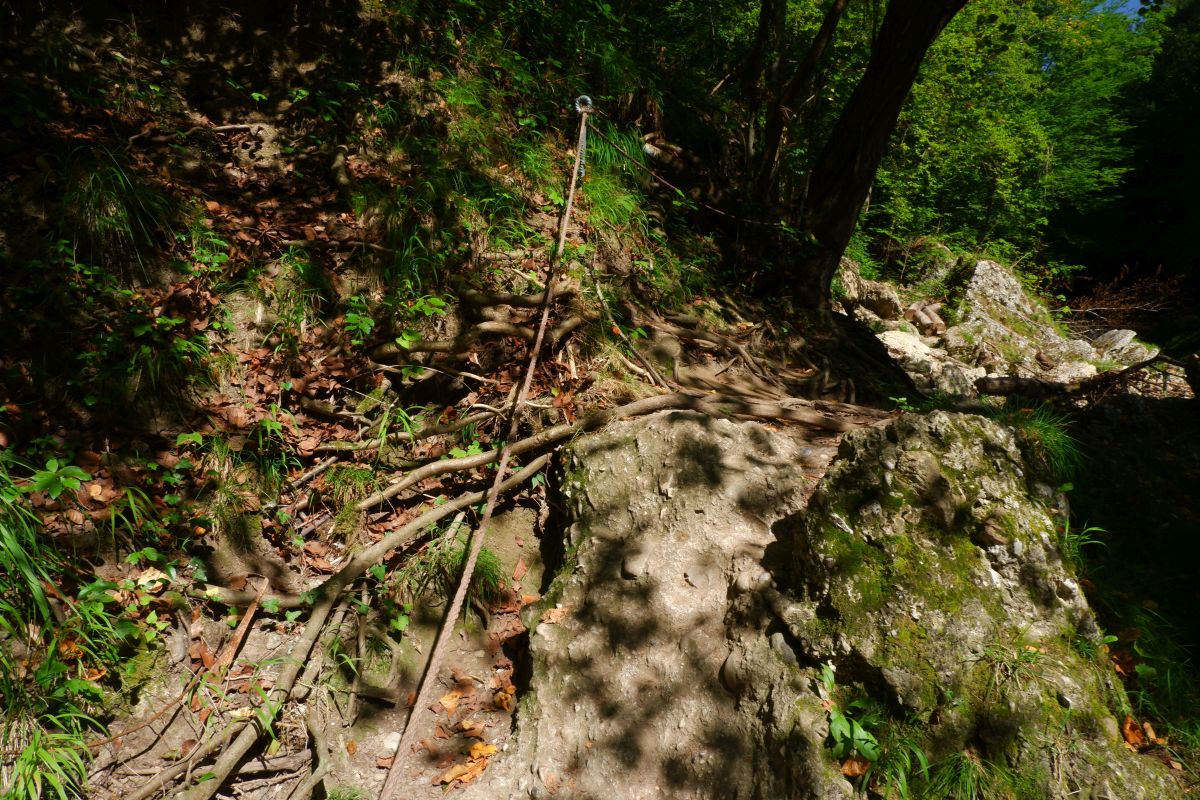 Wenn es ganz steil bergauf geht, ist der Weg manchmal auch mit (Stahl)seilen versichert.